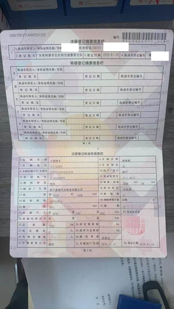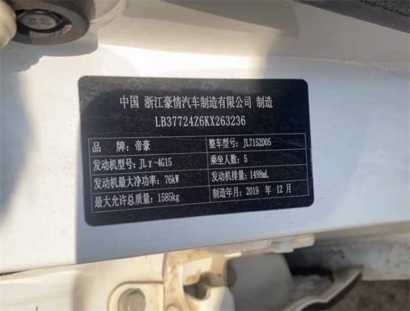 初次登记日期 2020-01-10 车辆名称 吉利汽车 远景