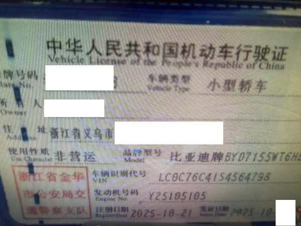 初次登记日期 2025-10-21 车辆名称 比亚迪