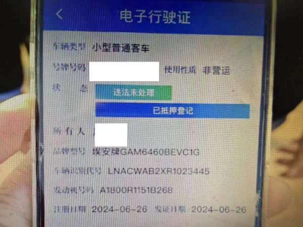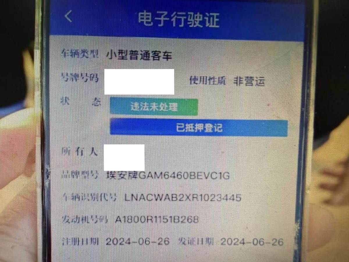 初次登记日期 2024-06-26 车辆名称 埃安牌