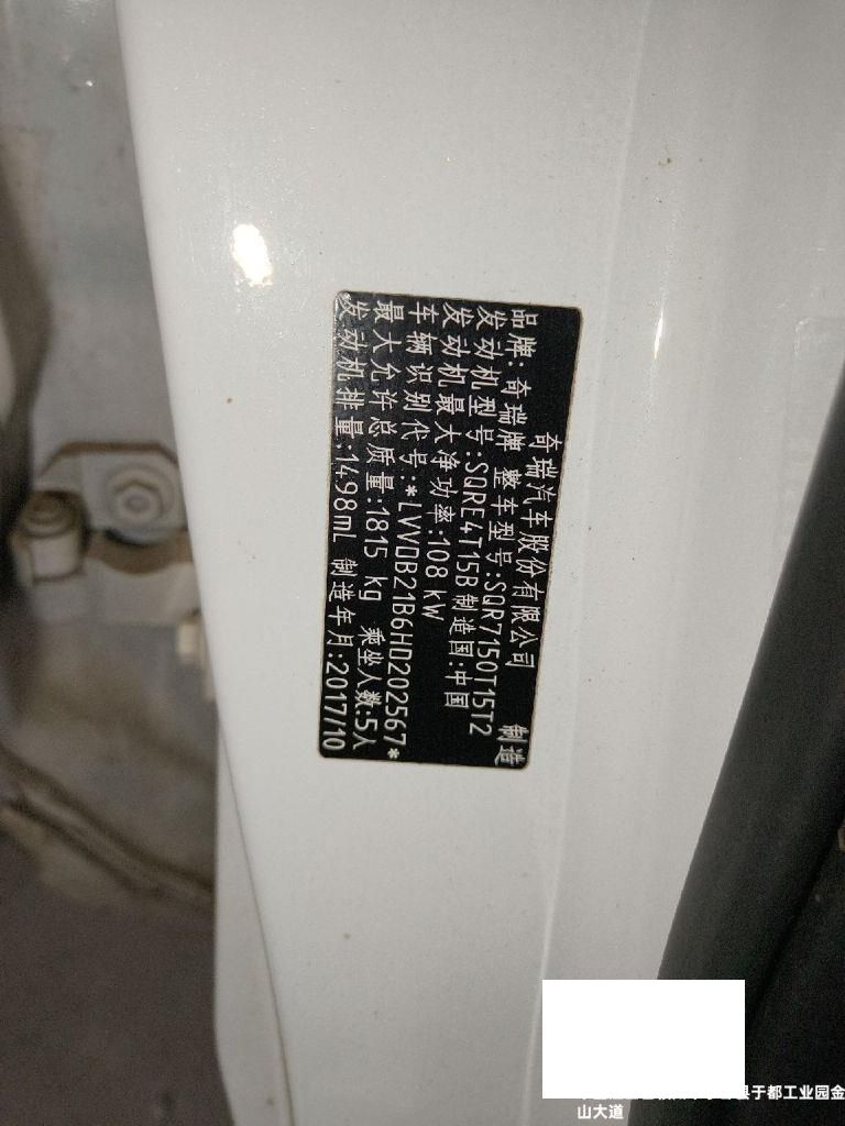 初次登记日期 2017-12-14 车辆名称 奇瑞 瑞虎