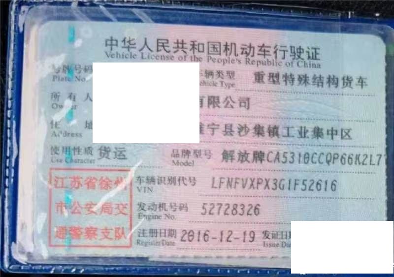 车辆归属地 江苏省徐州市 车辆停放仓库 江苏省徐州市徐州市