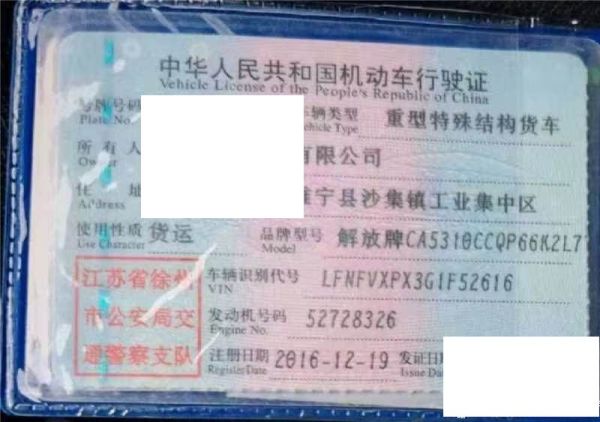 初次登记日期 2016-12-19 车辆名称 解放 解放J6(P6)