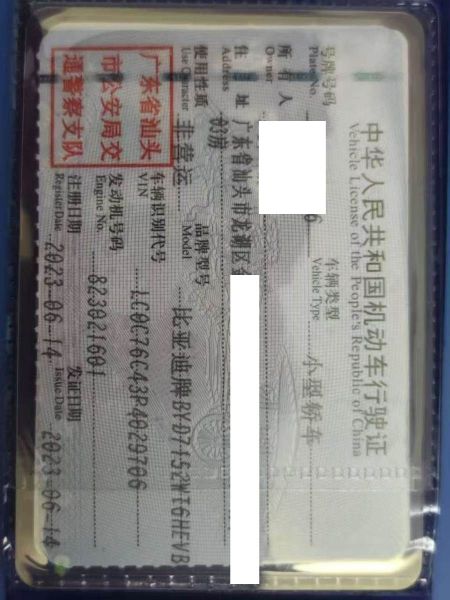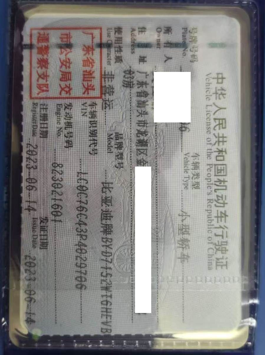 车辆归属地 广东省汕头市 车辆停放仓库 广东省汕头市