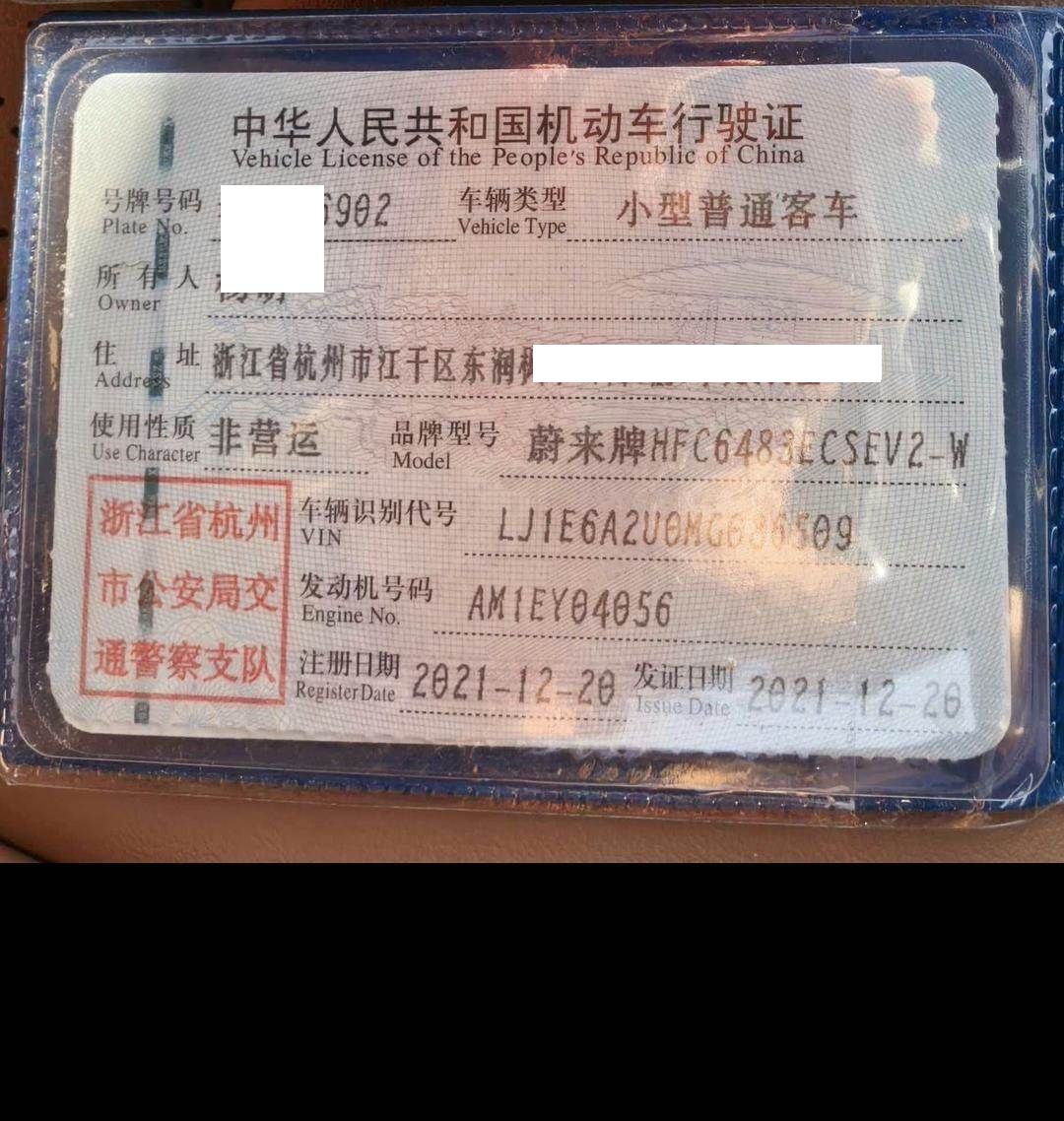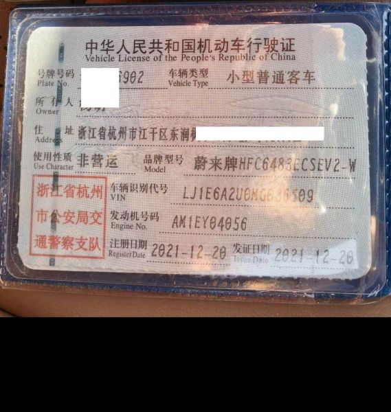 初次登记日期 2021-12-20 车辆名称 蔚来牌
