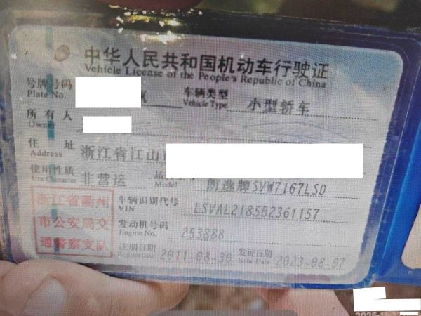 初次登记日期 2011-08-30 车辆名称 大众 朗逸