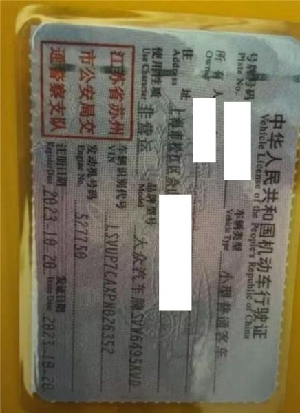 初次登记日期 2023-10-20 车辆名称 大众牌
