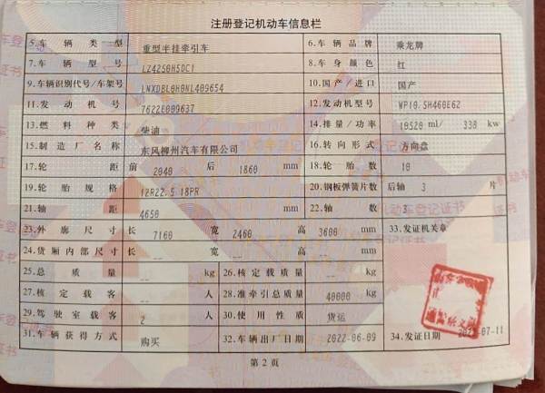 初次登记日期 2022-06-09 车辆名称 乘龙牌
