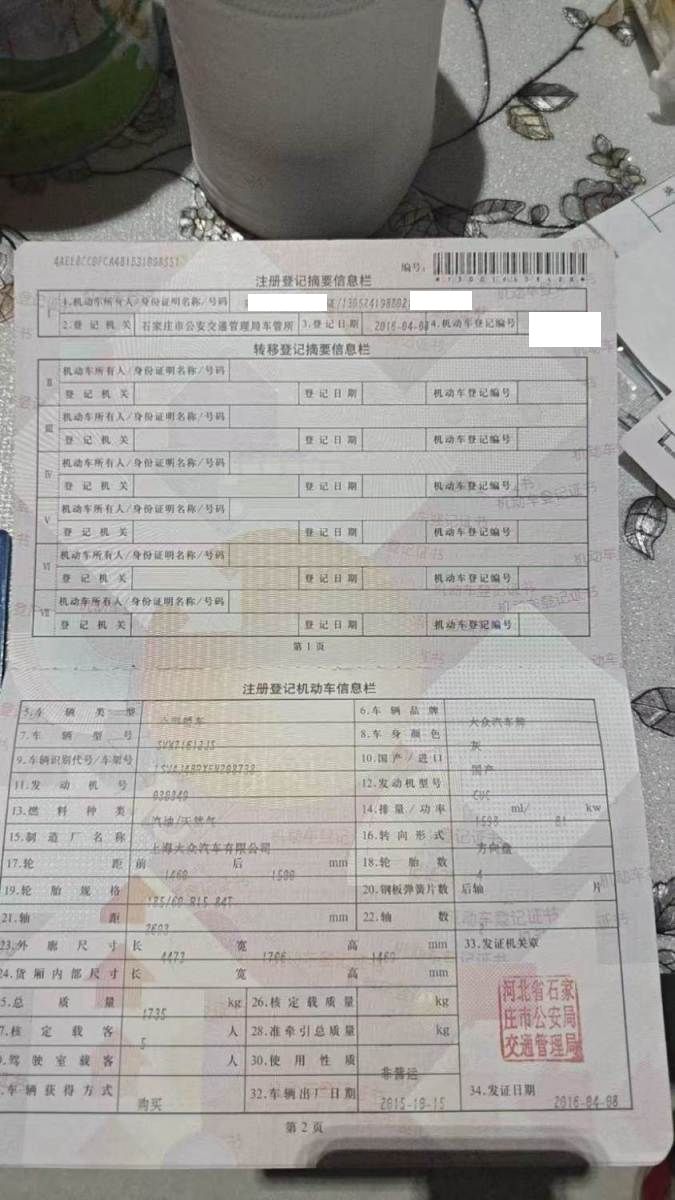 初次登记日期 2016-04-08 车辆名称 大众 桑塔纳
