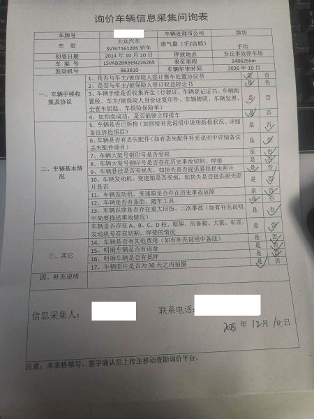 车架号是否受损 使用性质 非营运