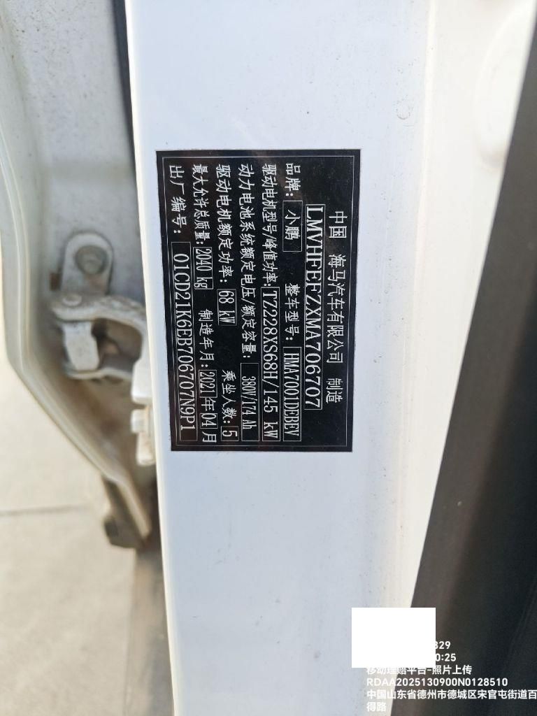 初次登记日期 2021-10-11 车辆名称 小鹏牌