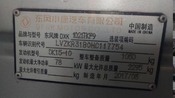 初次登记日期 2017-04-12 车辆名称 东风小康