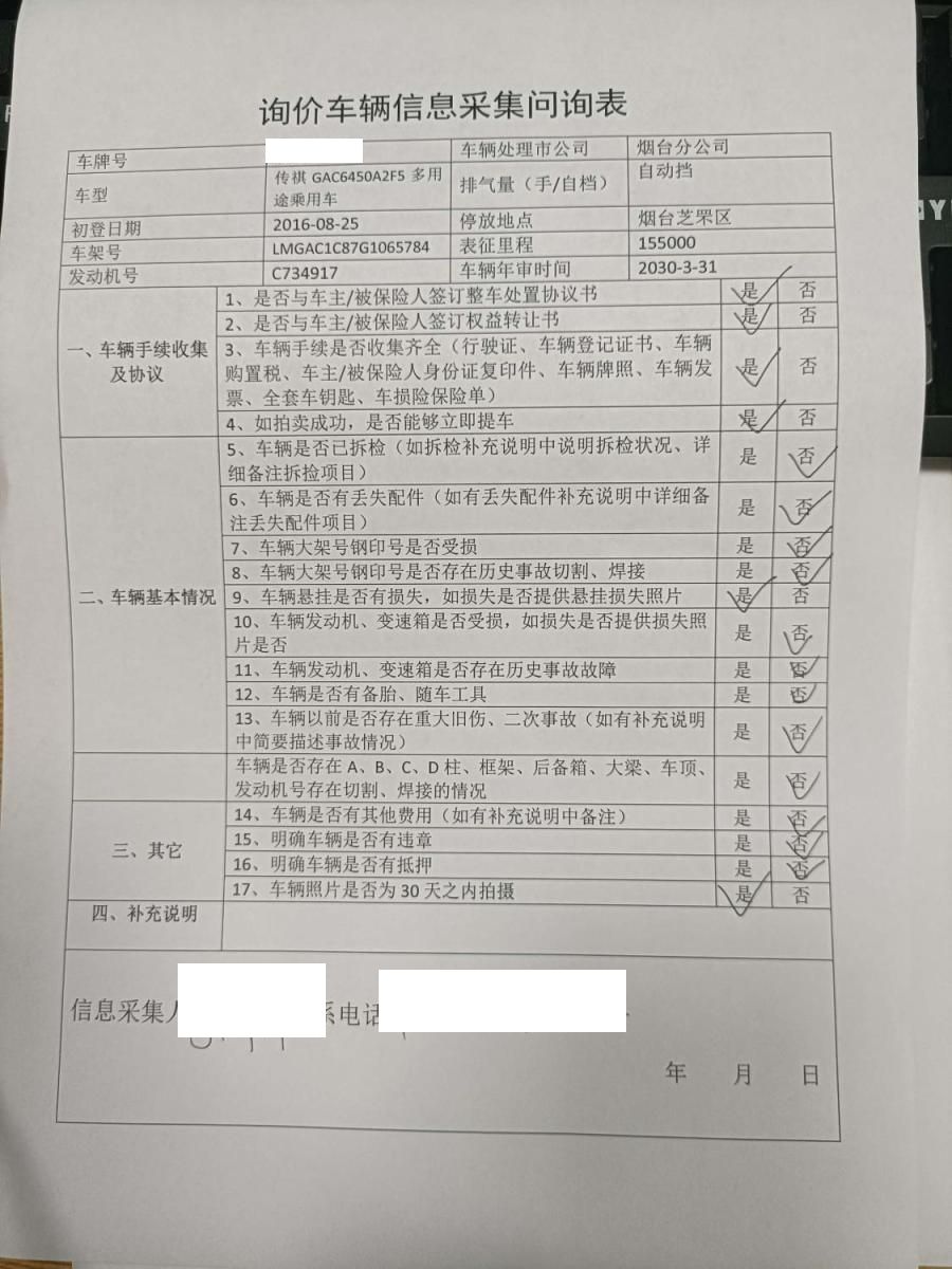 车架号是否受损 使用性质 非营运