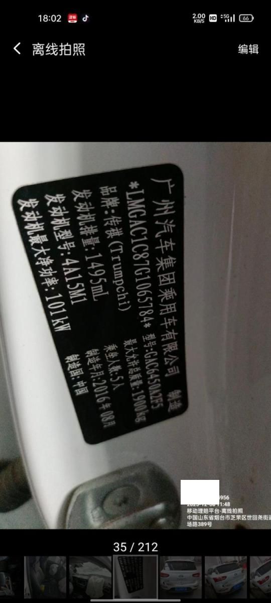 车牌号 鲁****** 品牌 传祺