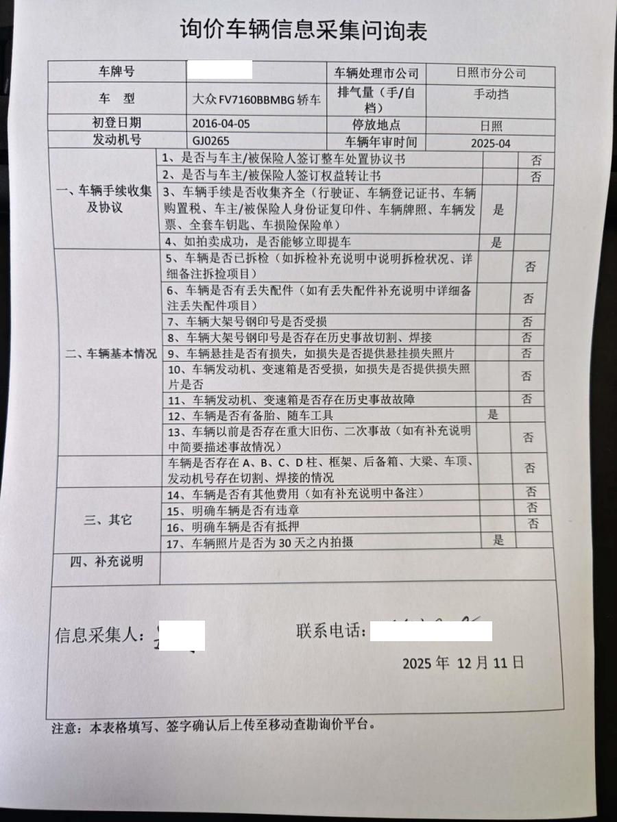 拍卖编号 N202512110670 事故类型 碰撞车