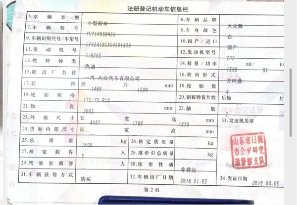 初次登记日期 2016-04-05 车辆名称 大众 捷达