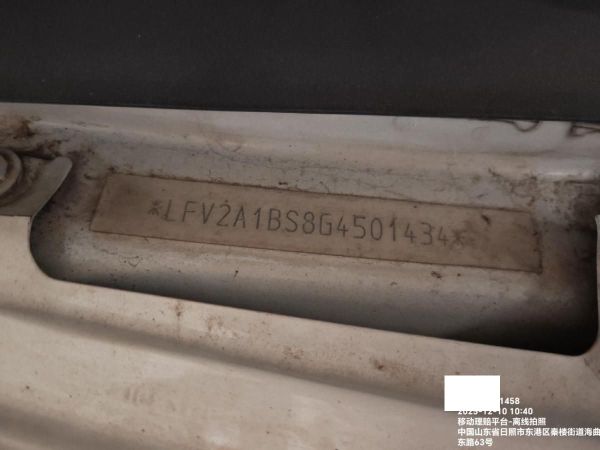 底盘号码 LFV2A1BS8G4501434 变速箱类型 手动