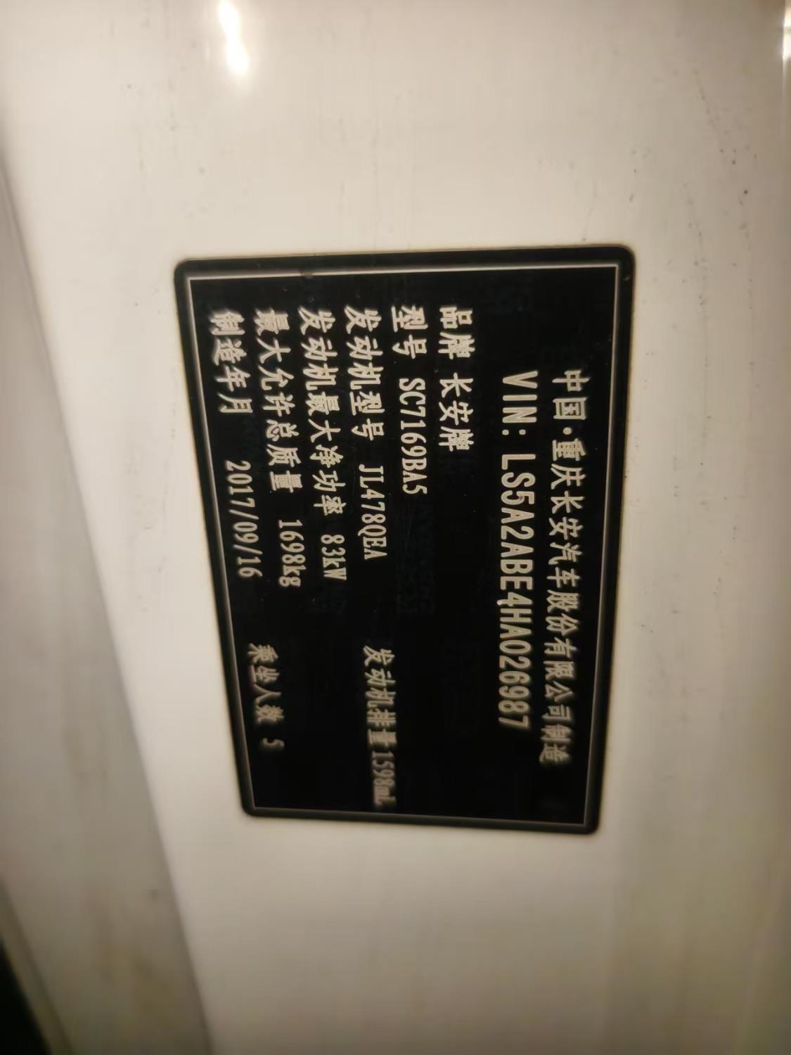 初次登记日期 2017-11-06 车辆名称 长安 逸动