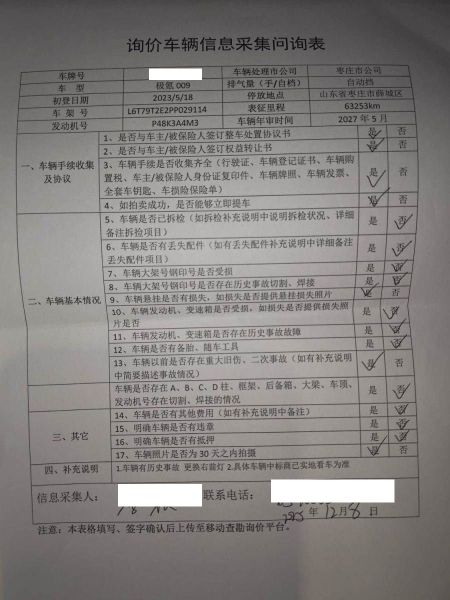 车架号是否受损 使用性质 非营运