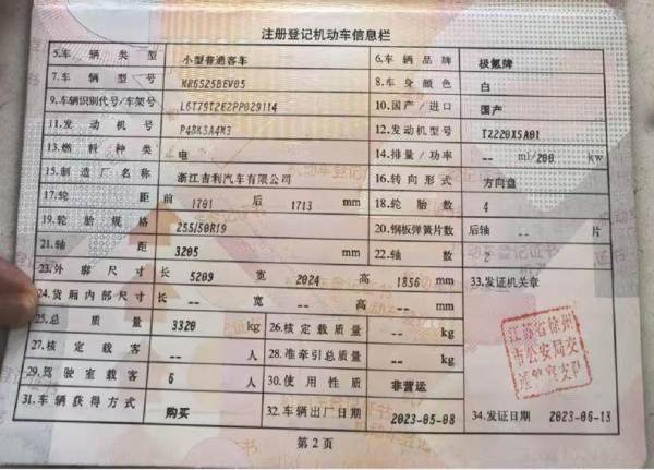 初次登记日期 2023-06-13 车辆名称 极氪牌