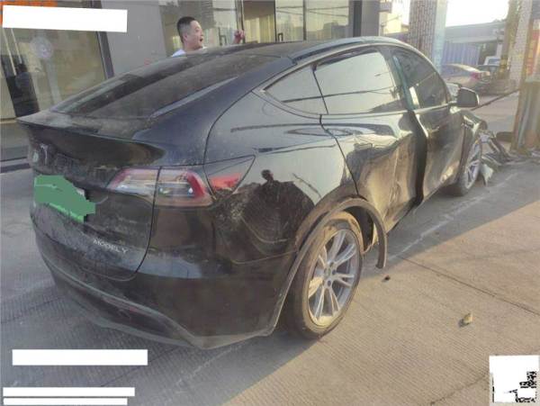 全车受损严重,气囊弹出安全带抱死,底盘、电池包隐损