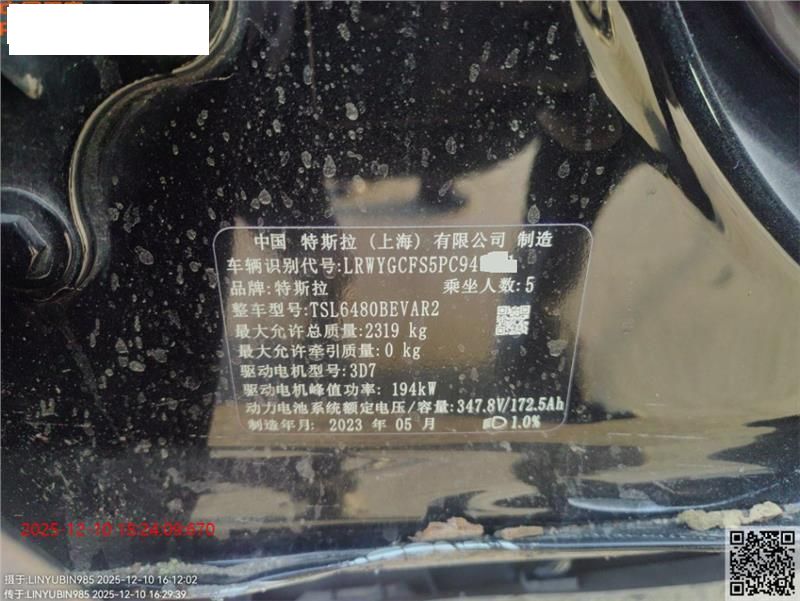 初次登记日期 2023-05-23 车辆名称 特斯拉 Model