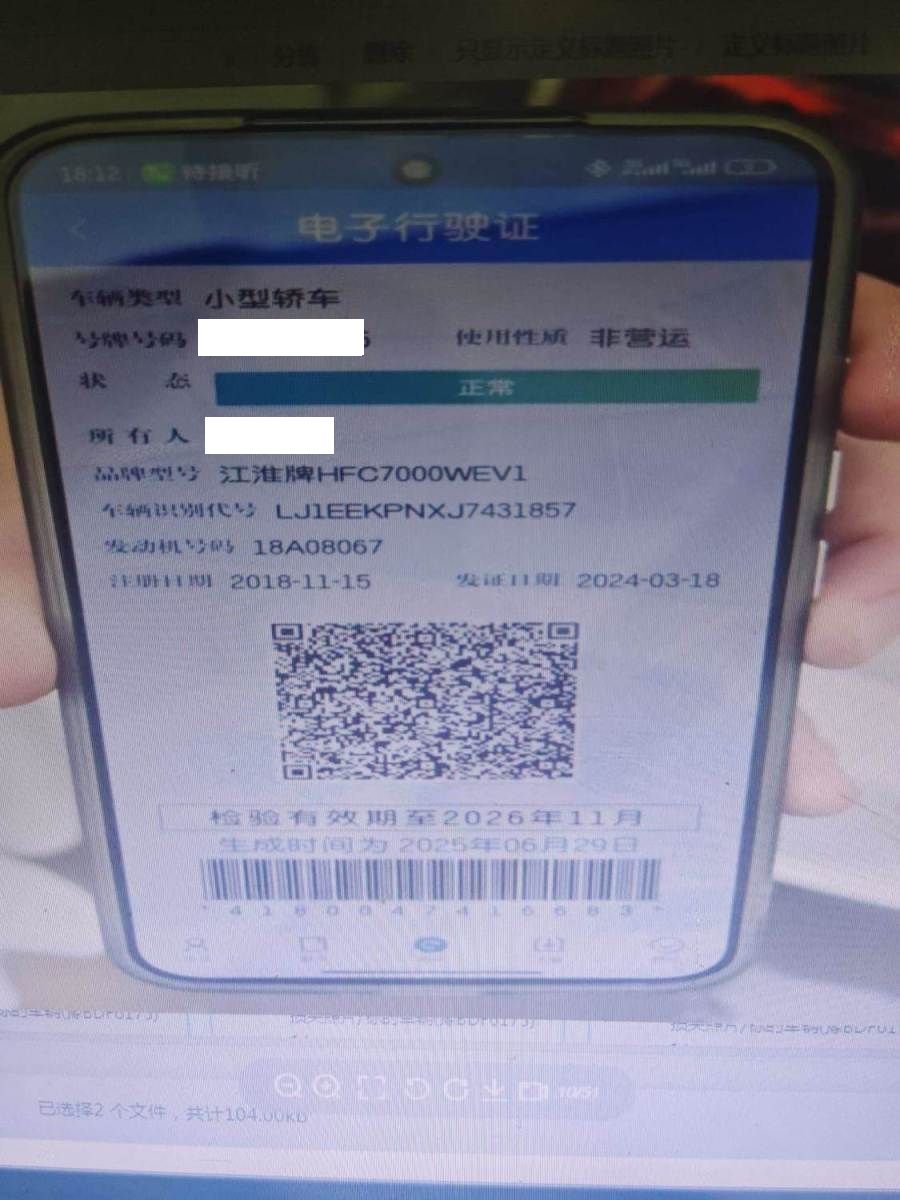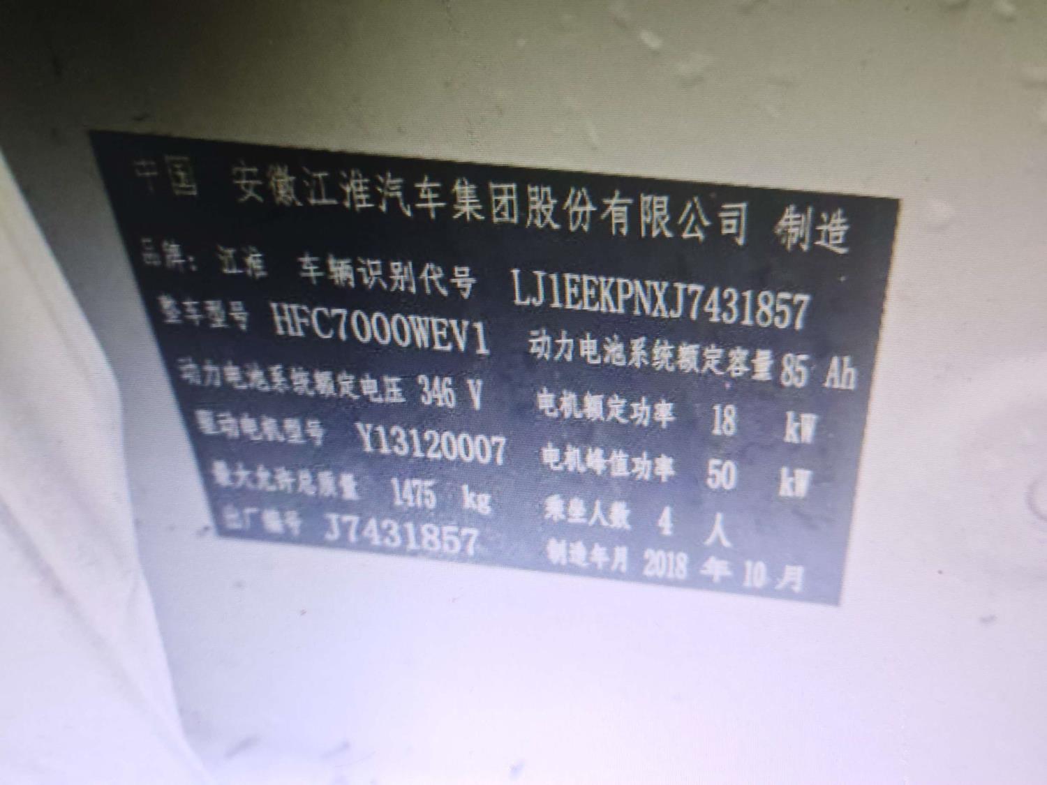 初次登记日期 2018-11-15 车辆名称 江汽集团 江淮