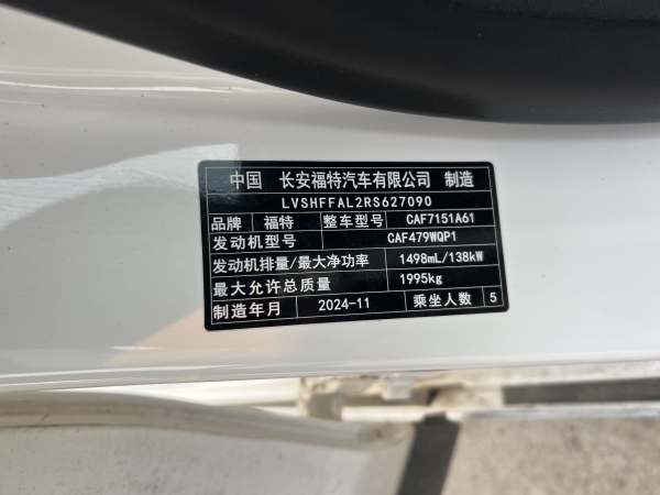 初次登记日期 2024-11-25 车辆名称 福特 蒙迪欧