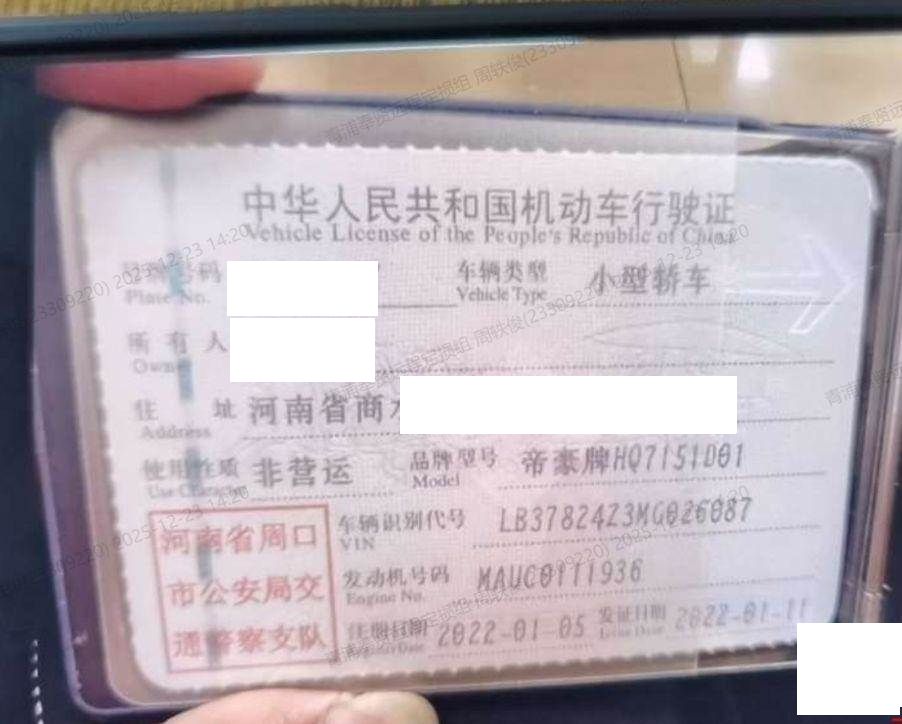 车辆归属地 河南省周口市 车辆停放仓库 上海市青浦区青浦区