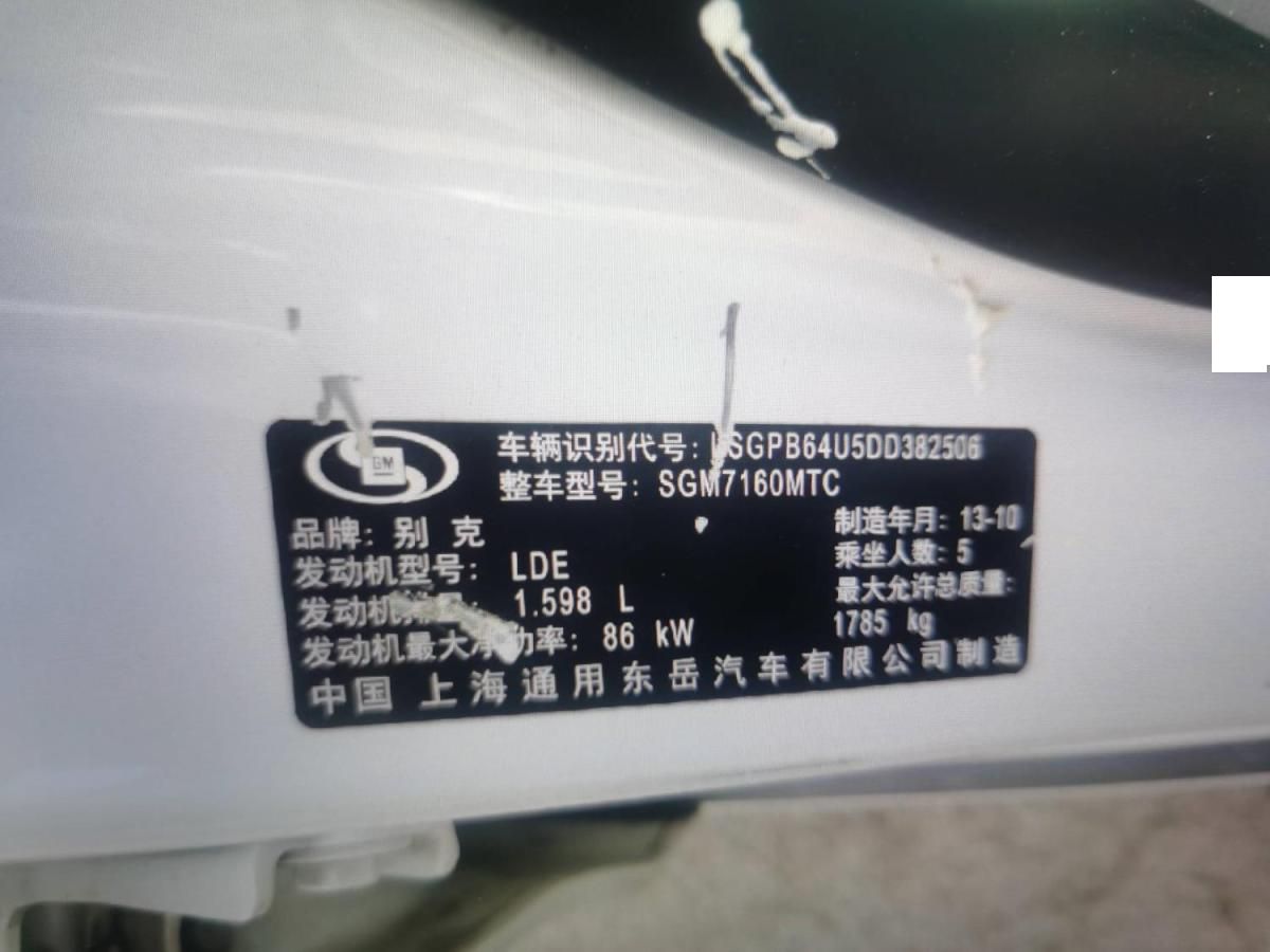初次登记日期 2013-11-20 车辆名称 别克 英朗