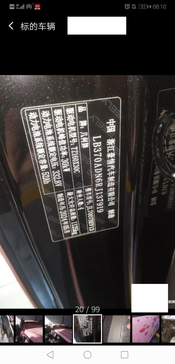 车牌号 浙****** 品牌 吉利