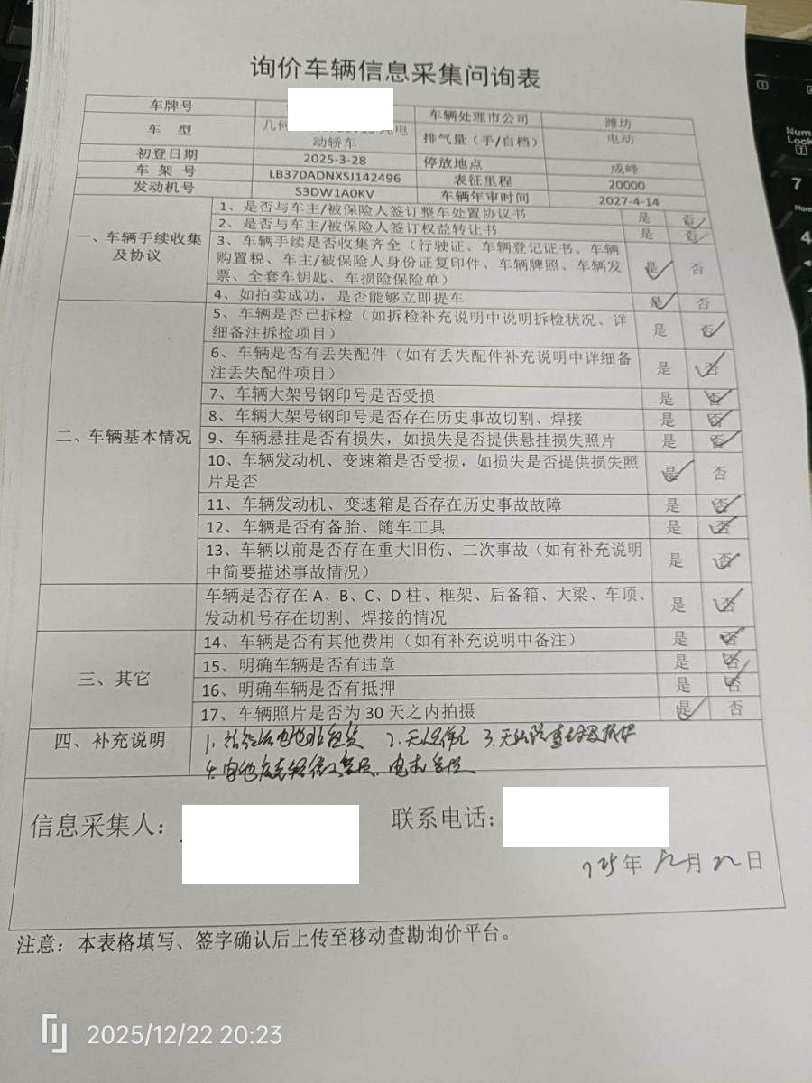 车架号是否受损 使用性质 非营运