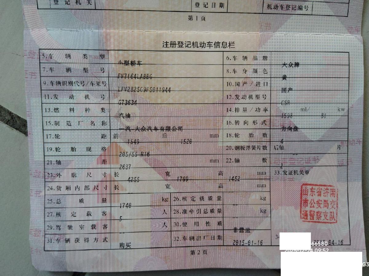 车牌号 鲁****** 品牌 大众