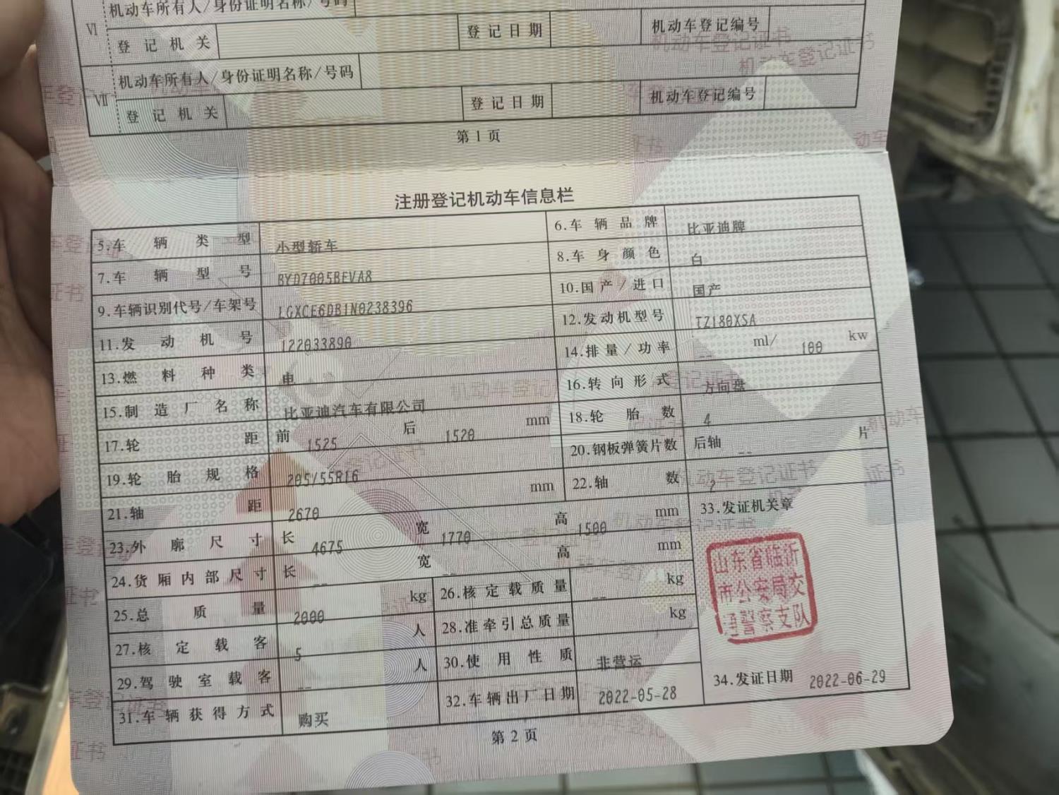 初次登记日期 2022-06-29 车辆名称 比亚迪 秦新能源