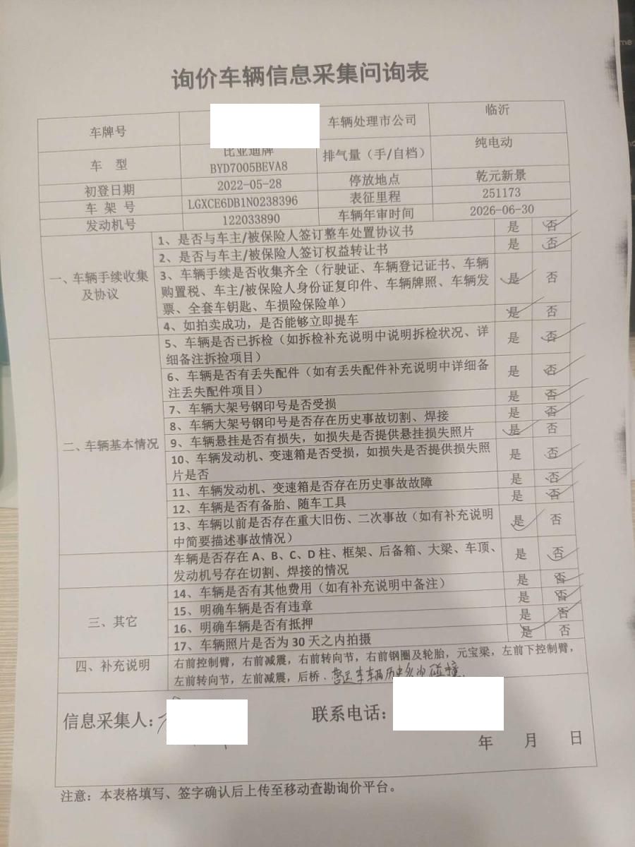 车架号是否受损 未知 使用性质 非营运