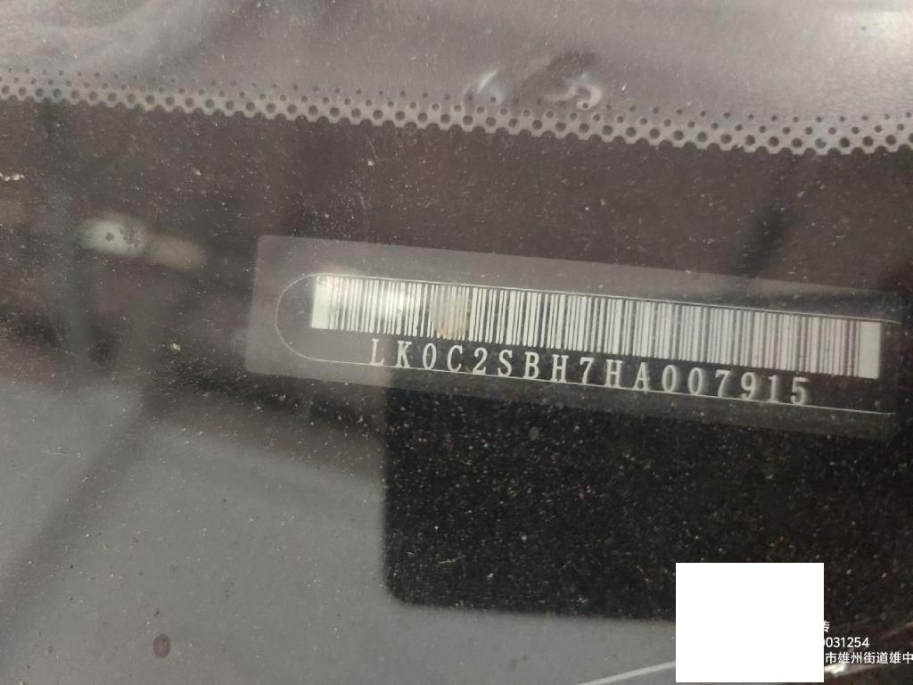 底盘号码 LK0C2SBH7HA007915 变速箱类型 手动