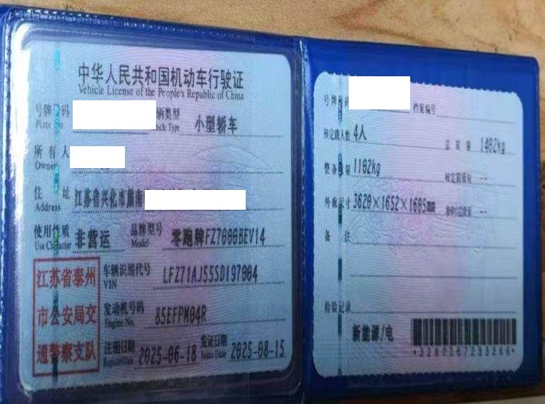 初次登记日期 2025-06-18 车辆名称 零跑汽车 零跑