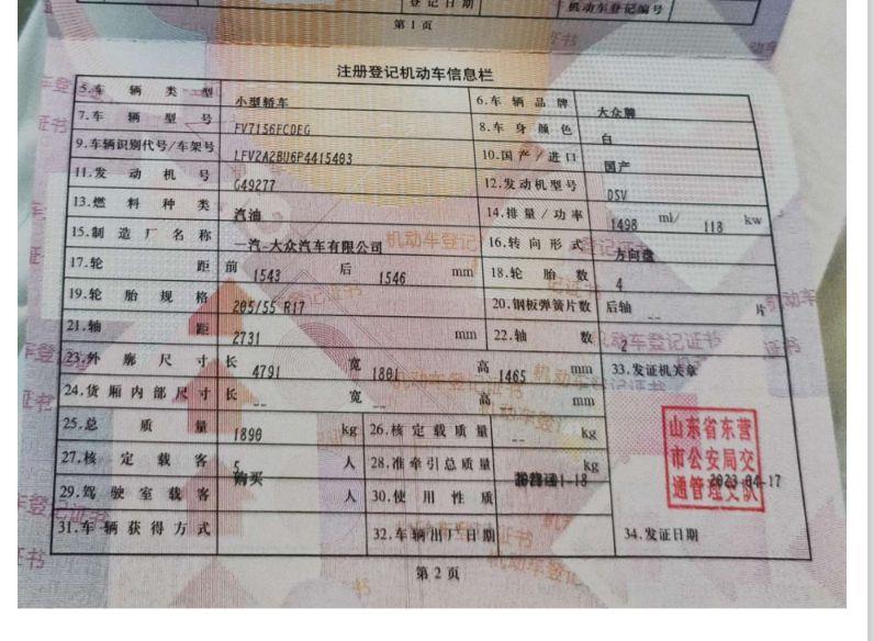 初次登记日期 2023-04-17 车辆名称 大众 速腾