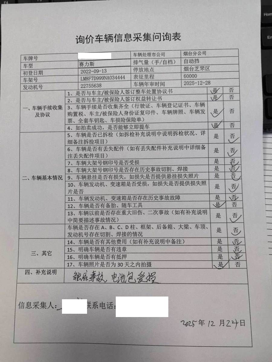 拍卖编号 N202512240994 事故类型 碰撞车
