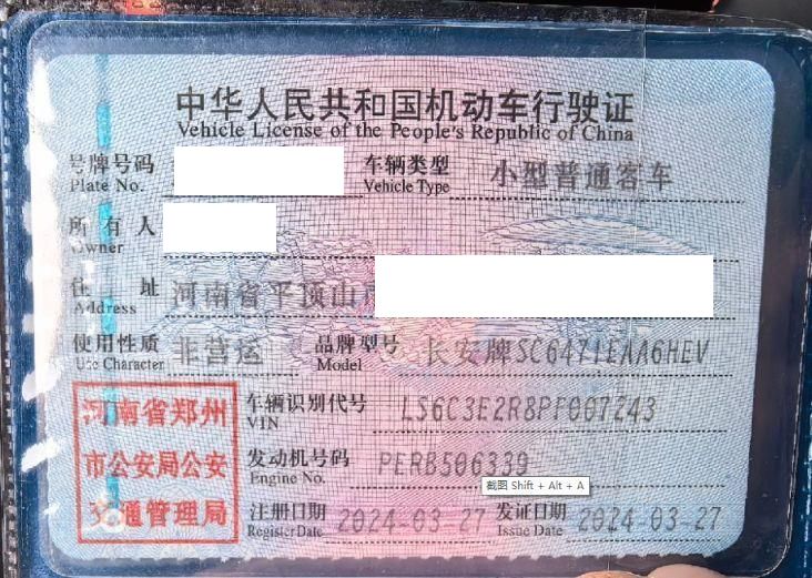 车牌号 豫****** 品牌 长安