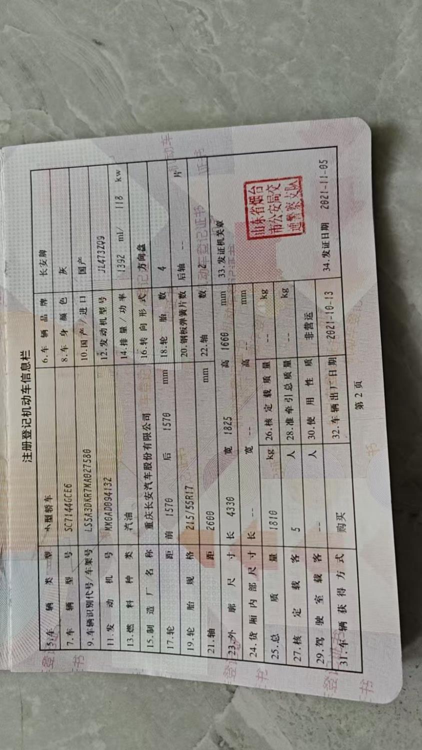 初次登记日期 2021-11-05 车辆名称 长安CS35PLUS