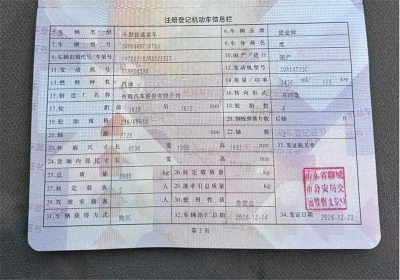 初次登记日期 2024-12-23 车辆名称 捷途大圣