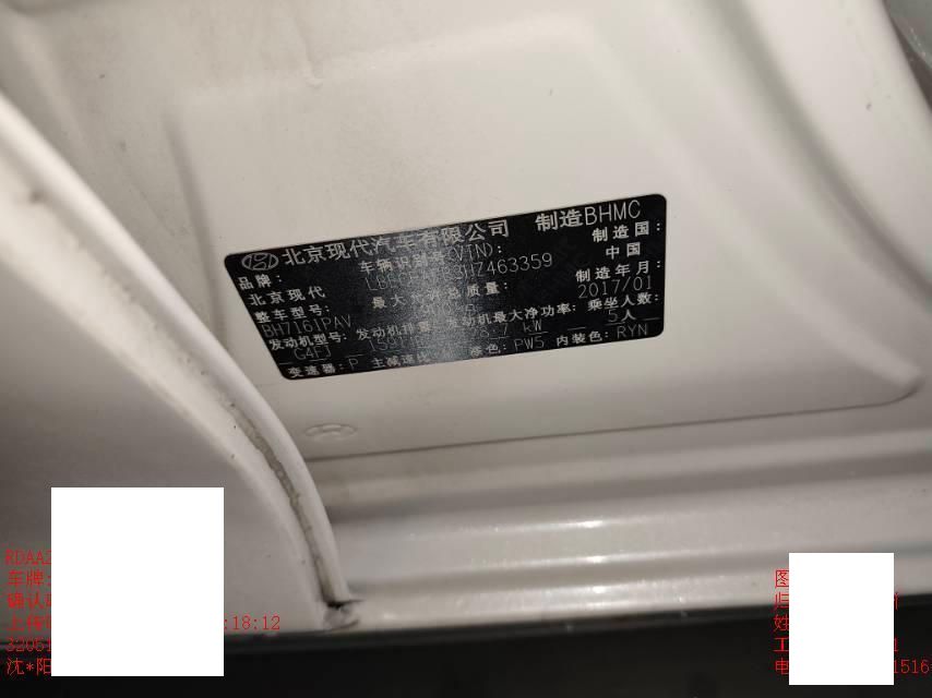 初次登记日期 2017-01-23 车辆名称 现代 名图