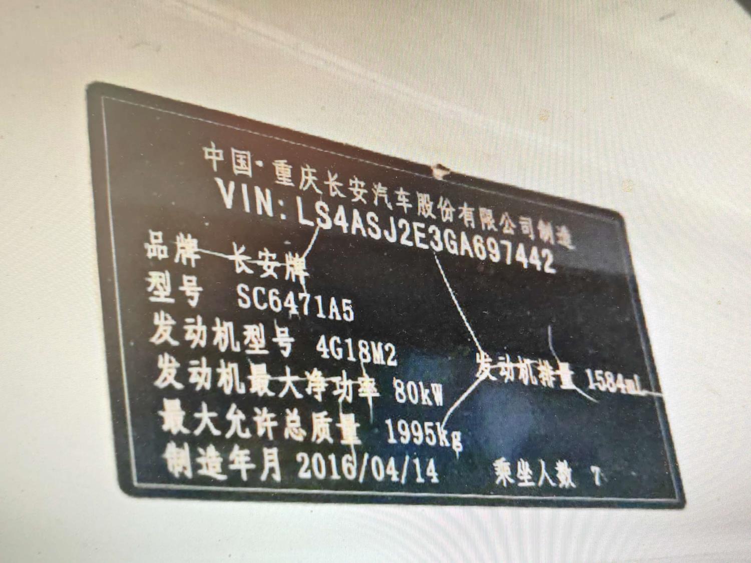 底盘号码 LS4ASJ2E3GA697442 变速箱类型 手动