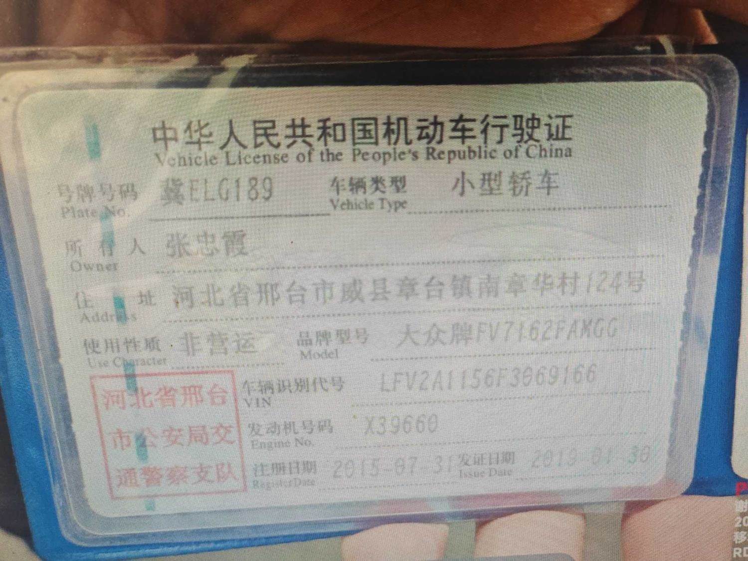 车牌号 冀****** 品牌 大众