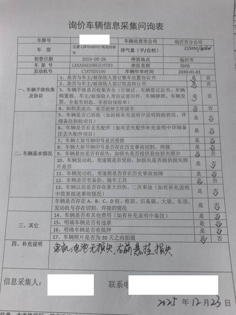 拍卖编号 N202512250982 事故类型 碰撞车
