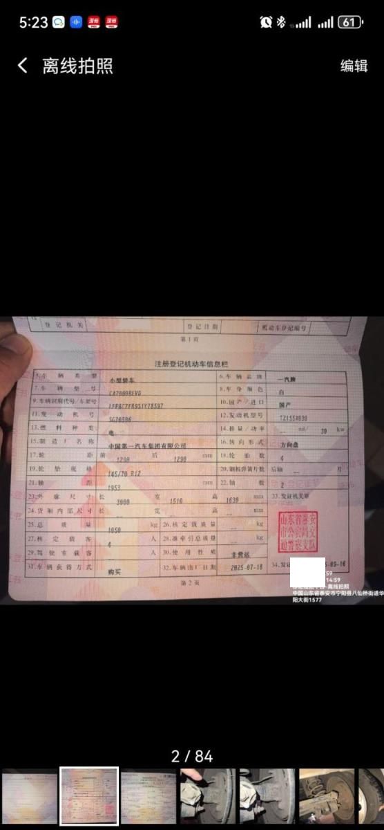 车牌号 鲁****** 品牌 奔腾