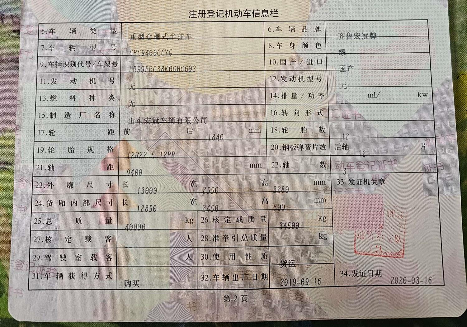 初次登记日期 2020-03-16 车辆名称 猎豹牌