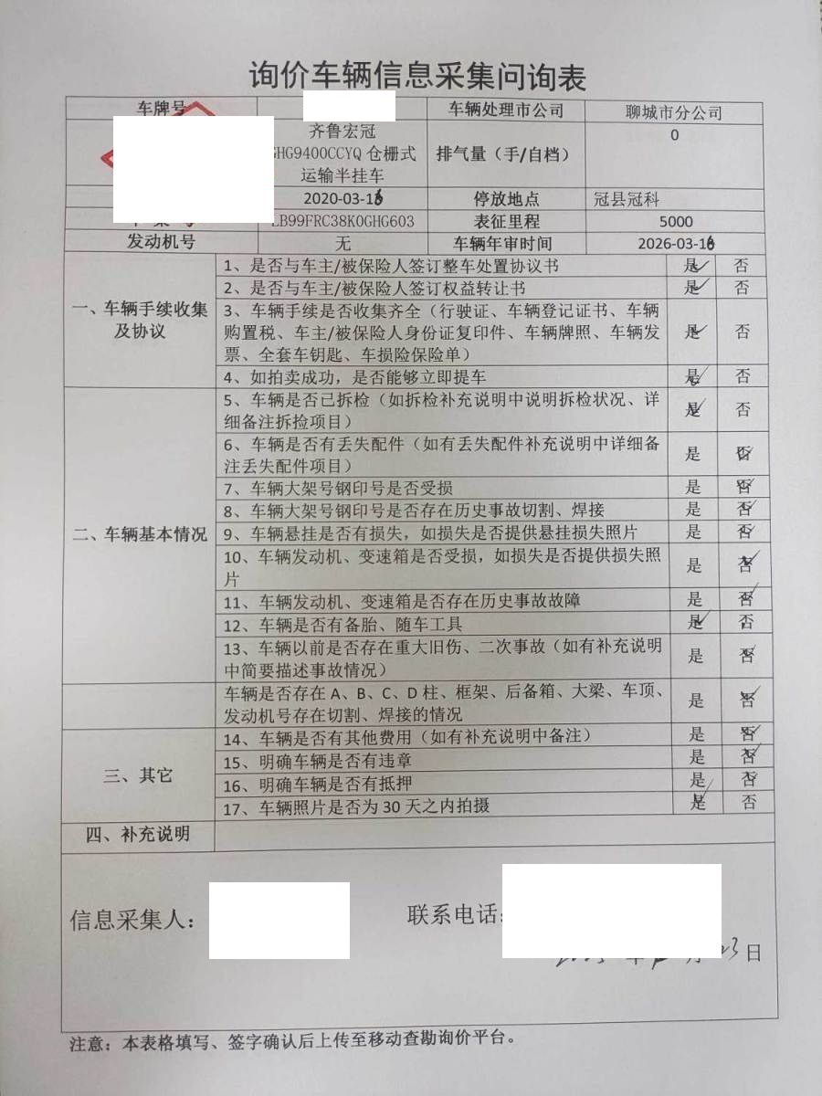 车架号是否受损 未知 使用性质 货运