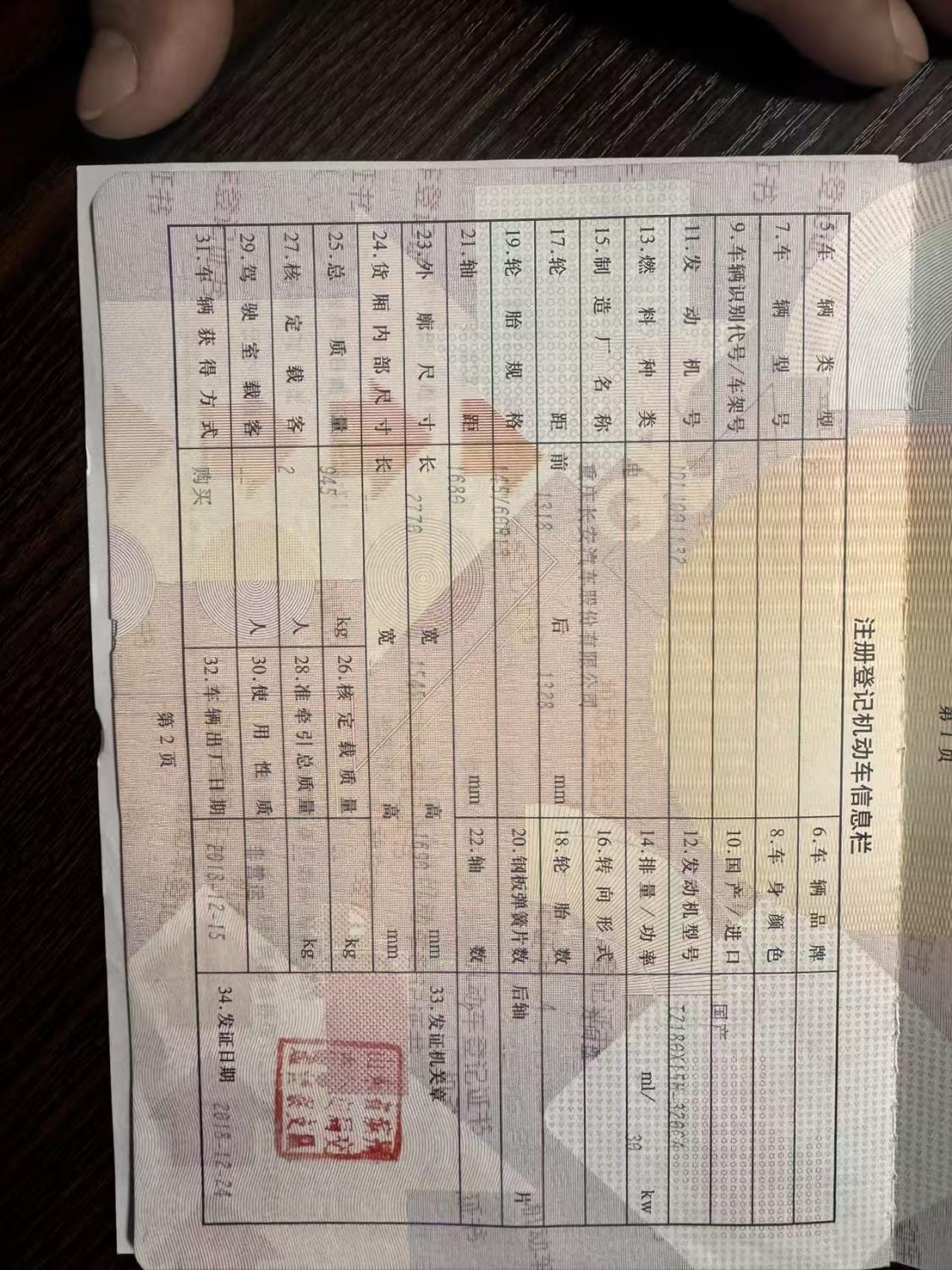 初次登记日期 2018-12-24 车辆名称 长安欧尚 尼欧