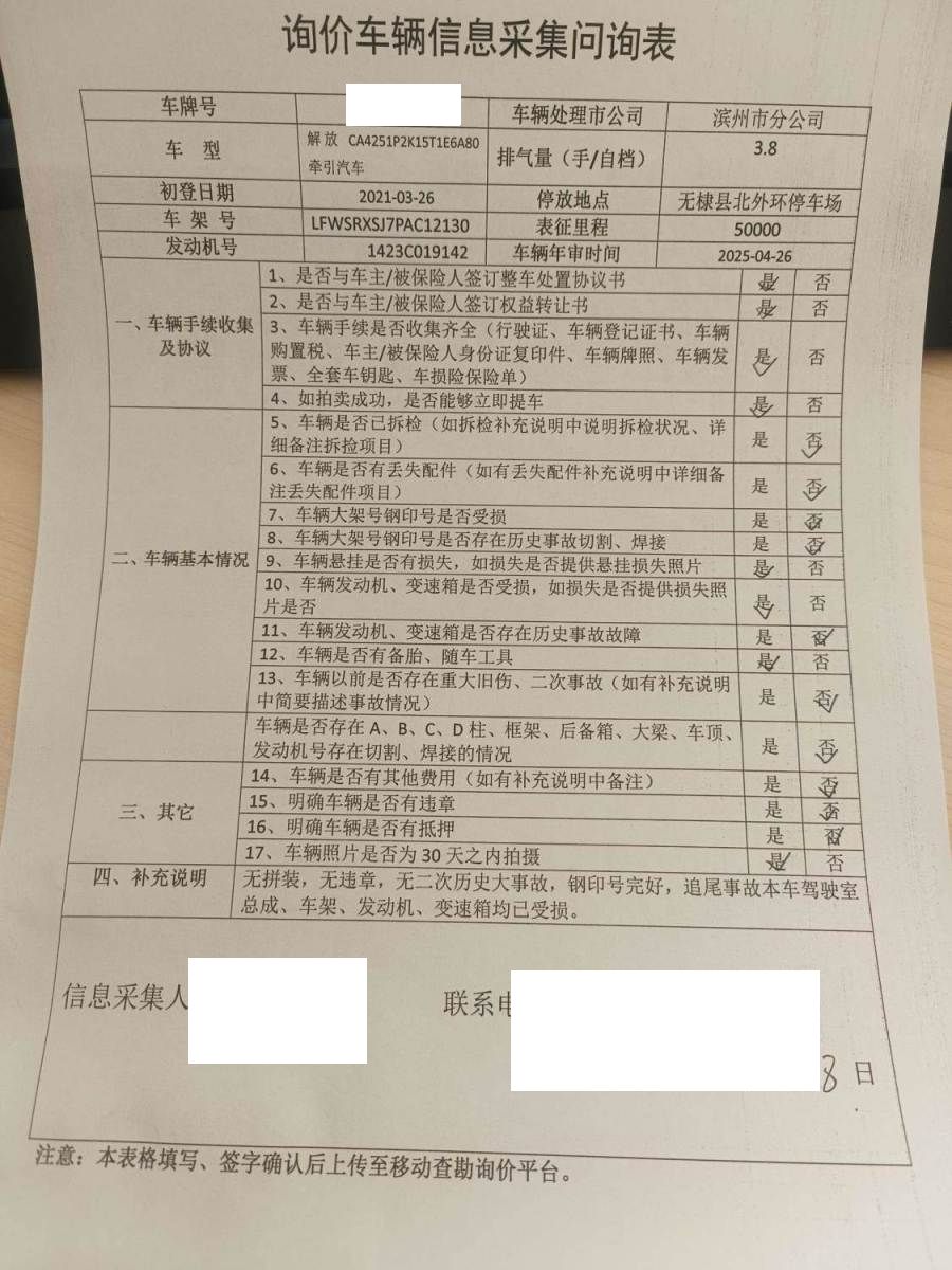 车牌号 鲁****** 品牌 解放